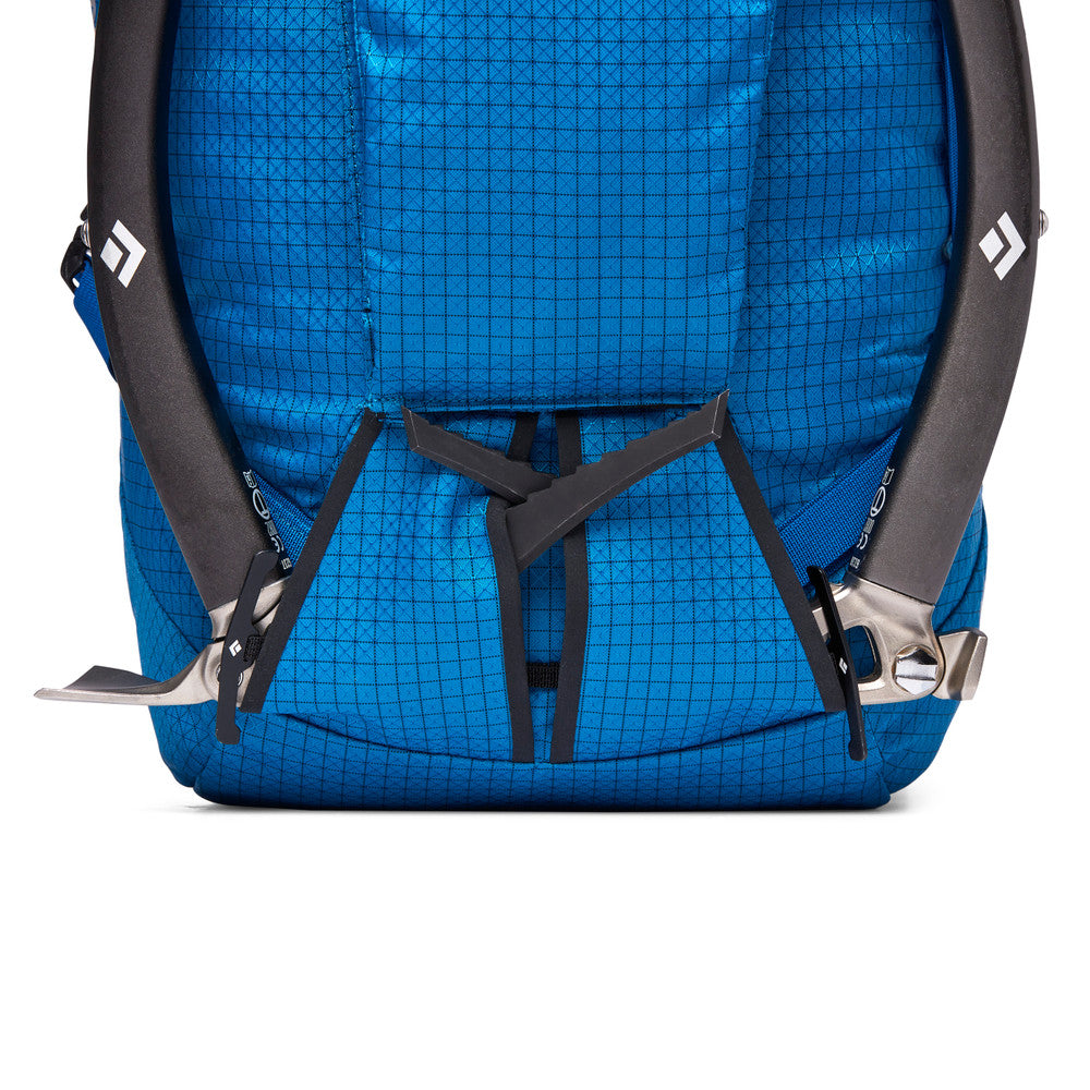 Dedicated, durable and designed for ice cragging, mixed ascents and cold-weather expeditions, the Black Diamond Mission pack is our toughest alpine pack. Featuring an updated BD X-rip 420d fabric with UTS™ coating, these packs are now ultra-durable to withstand season after season of mountain abuse. These packs also provide a balanced carry thanks to its SwingArm shoulder straps, and fully strippable waistbelt, lid and frame-sheet. The new custom metal dogbone ice tool attachment provides secure attachment for technical ice tools and mountaineering axes while a front crampon pouch and a tuck-away rope strap secure gear to the outside. Finally, a drawcord skirt provides a second defense against spindrift and light precip.