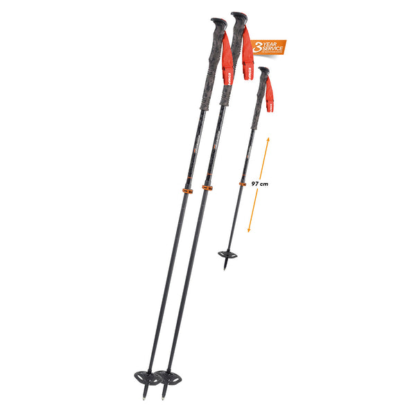 The D'scent Carbon Vario is designed to provide the most safety possible on and off the piste. Easily removeable click-in strap when skiing off track in combination with an extended grip zone.Incredibly robust and durable yet lightweight because of the alloy upper and carbon lower part.
