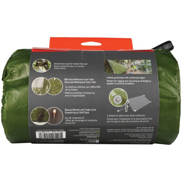 Turn to the Survive Outdoors Longer Sport Utility Blanket for an unexpected night outdoors. Extra-durable, versatile, and reusable, the SOL Sport Utility Blanket can be used as an emergency blanket one day and then as a picnic blanket the next. Single-layer woven structure is extremely resistant to tears and punctures with over 6x the durability of competing products and is ideal for moving heavy objects – from firewood to big game. Furthermore, six metal grommets offer a variety of shelter configurations, depending on your needs. The material reflects 95% of radiated body heat while the bright orange exterior colour makes you easy to spot.